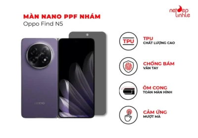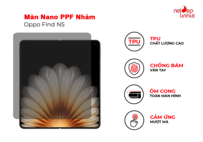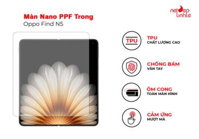 Miếng dán màn hình Oppo Find N5 là một phụ kiện, được sử dụng để bảo vệ màn hình của điện thoại khỏi vết trầy, xước và dấu vân tay. Nó thường được làm từ chất liệu nhựa hoặc kính cường lực, có khả năng chống va đập , và bảo vệ màn hình khỏi những tác động bên ngoài.