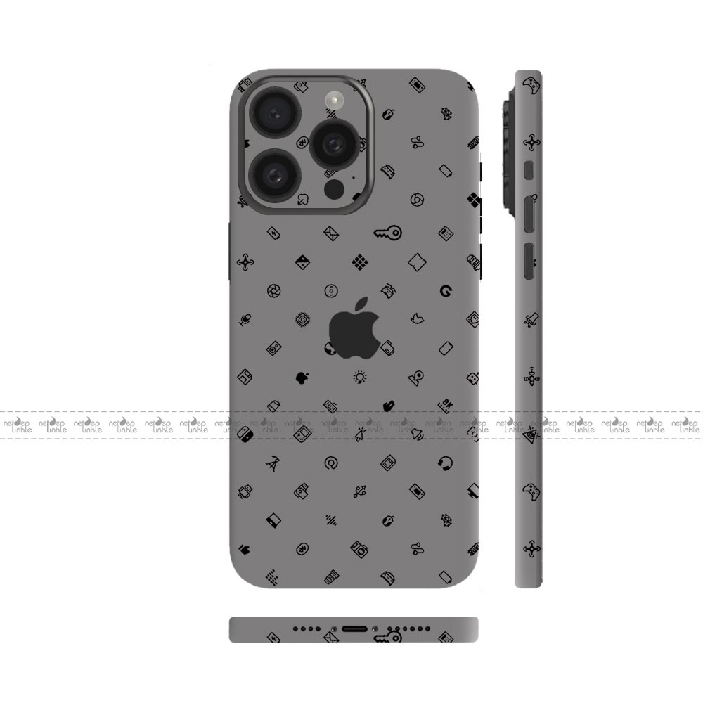 Dán Skin iPhone 15 Series Hình iCon Xám Vinyl