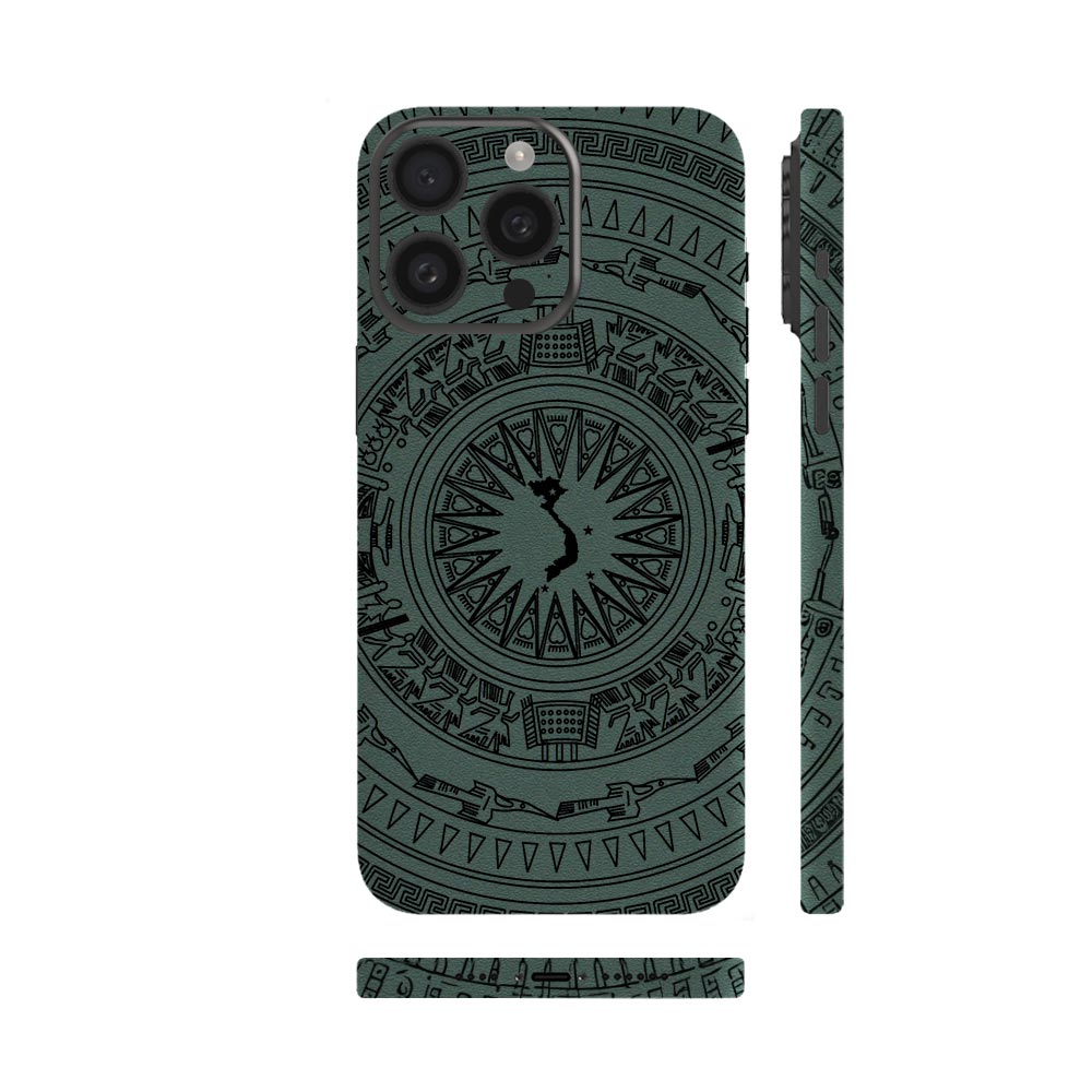 Dán Skin iPhone 15 Series Hình Trống Đồng 1 Xanh Rêu Nhám