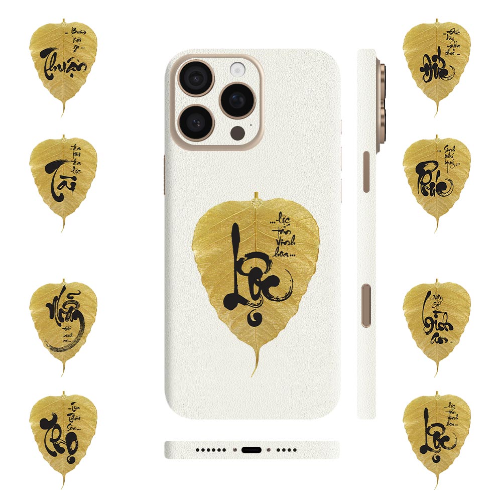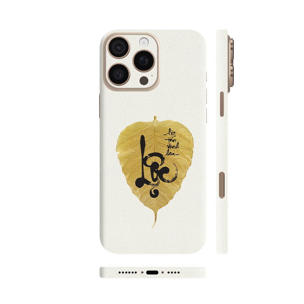 Dán Skin iPhone 16 Series Vân Da Màu Trắng Ghép Lá Bồ Đề
