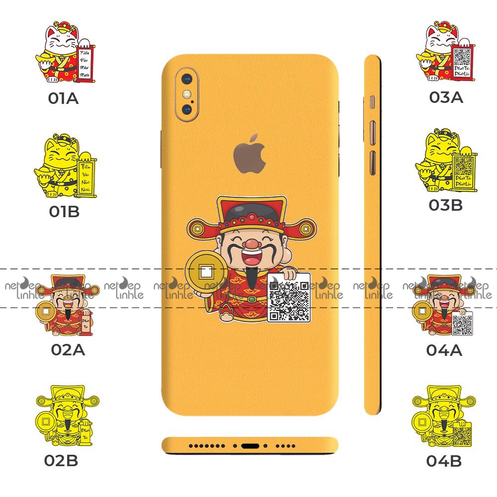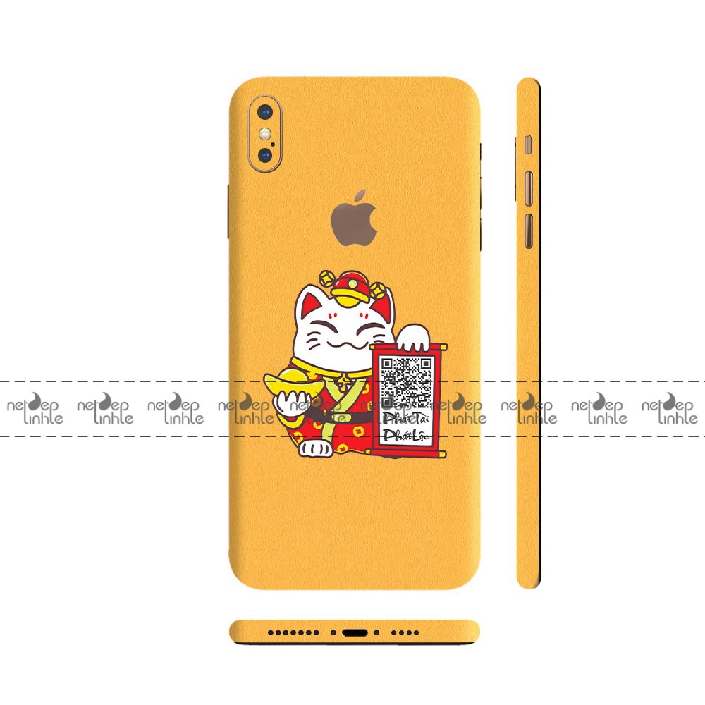 Dán Skin iPhone X Series – Vân Da 3M Màu Vàng Ghép Mèo Thần Tài