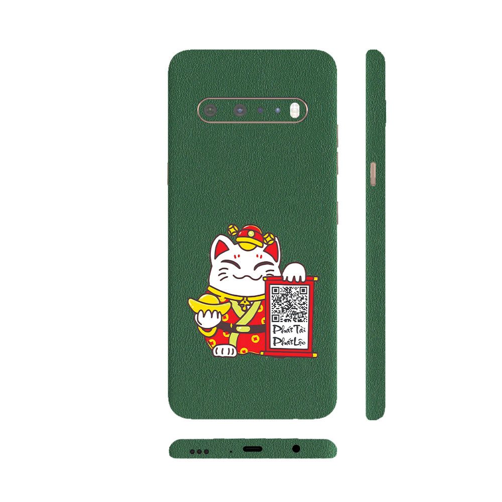 Dán Skin LG V60 Series Vân Da 3M Màu Xanh Rêu Ghép Mèo Thần Tài