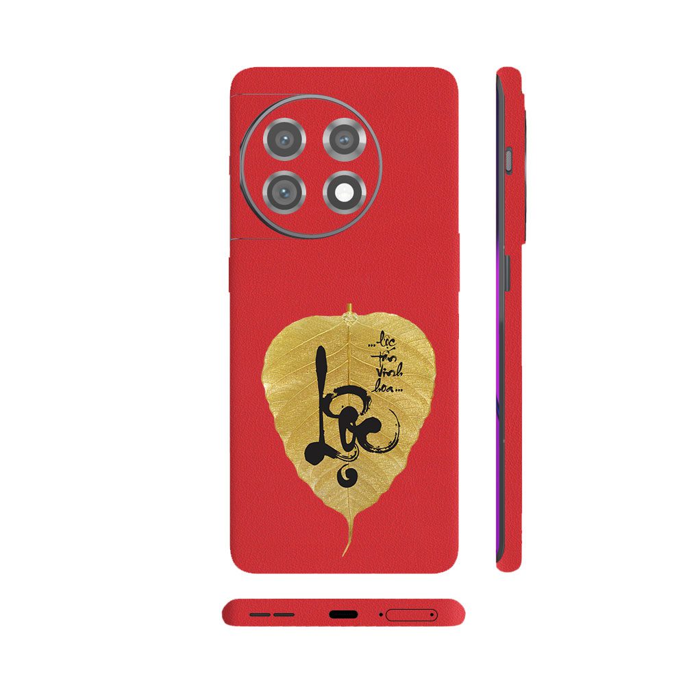Dán Skin Oneplus 11 Series Vân Da 3M Màu Đỏ Ghép Lá Bồ Đề