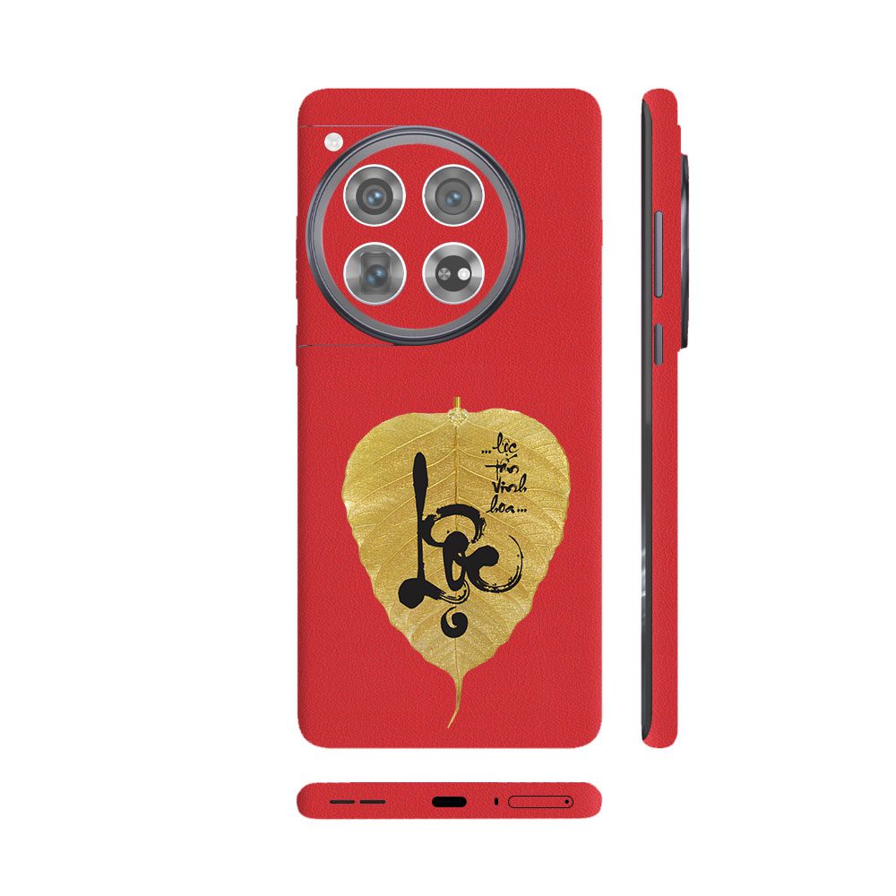Dán Skin Oneplus 12 Series Vân Da 3M Màu Đỏ Ghép Lá Bồ Đề