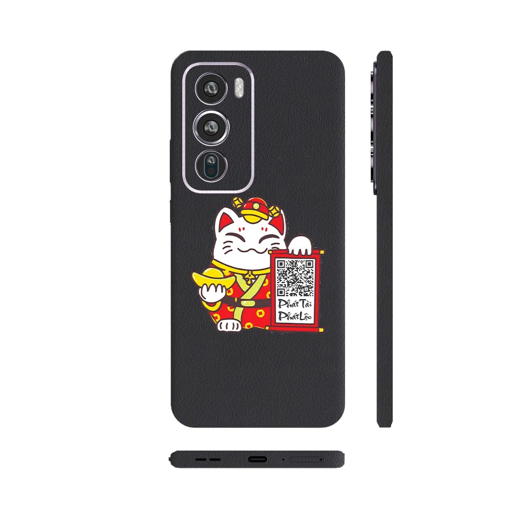 Dán Skin Oppo Reno Series Vân Da 3M Màu Đen Ghép Mèo Thần Tài