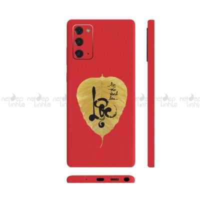 Dán Skin Samsung S20 series Vân Da Màu Đỏ Ghép Lá Bồ Đề
