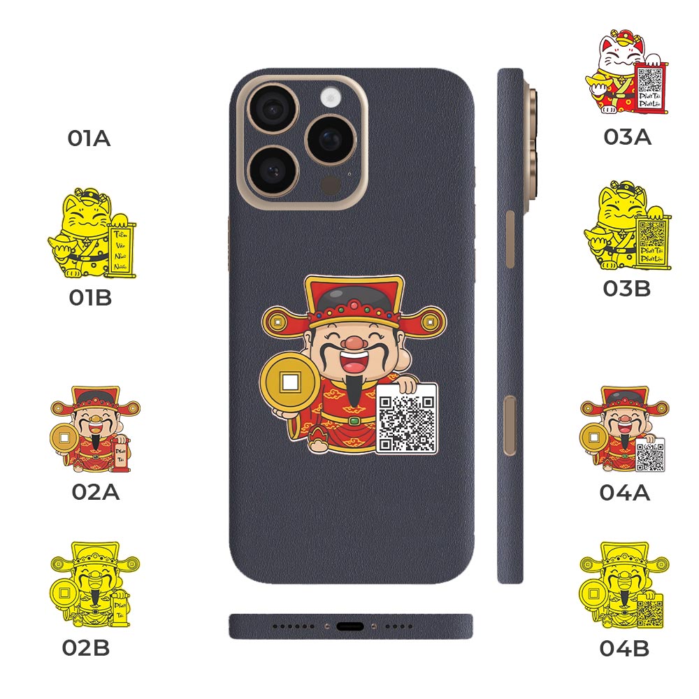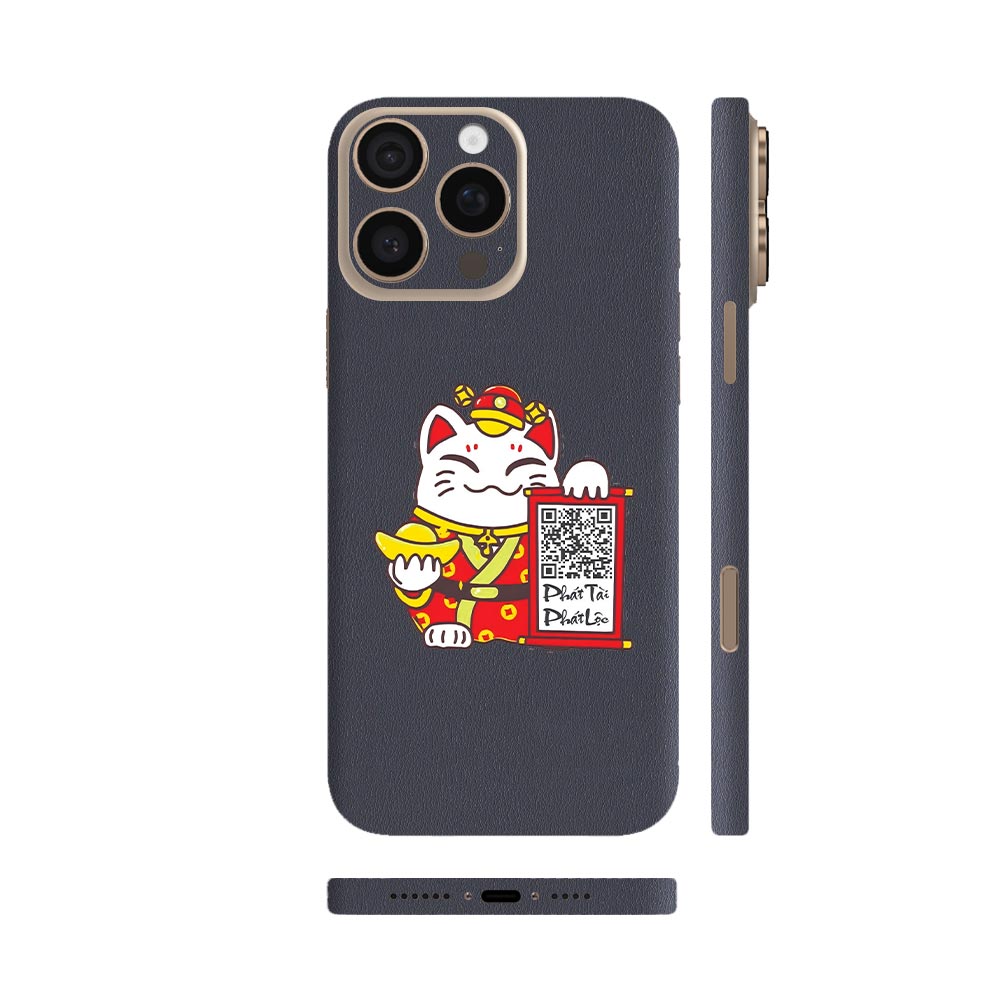 Dán Skin Vân Da iPhone 16 Series Màu Xanh Đen Ghép Thần Tài