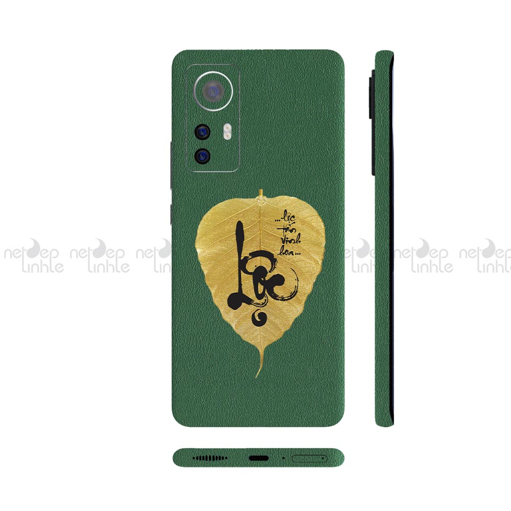 Dán Skin Xiaomi 12 Series Vân Da 3M Màu Xanh Rêu Ghép Lá Bồ Đề