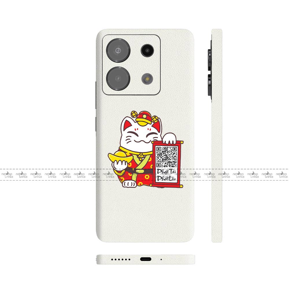 Dán Skin Xiaomi Redmi Note 13 Series Vân Da 3M Màu Trắng Ghép Mèo Thần Tài